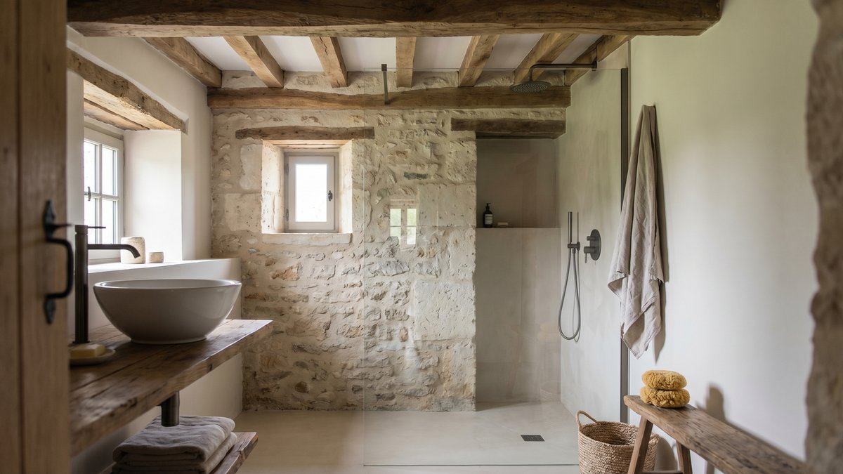 Dans une maison de campagne, la salle de bain n'est pas un luxe périphérique. C'est une pièce technique qui, si elle est mal pensée, peut ruiner en quelques années ce que la maçonnerie a construit en un siècle.