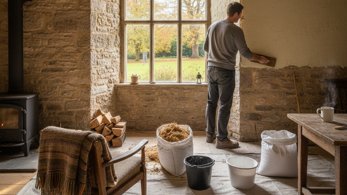 - Enduits chaux‑chanvre intérieurs, qui apportent un complément d'isolation tout en laissant respirer le mur