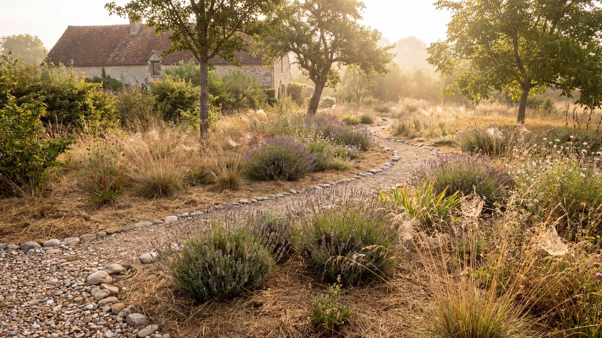 Entre arrêtés préfectoraux, nappes en tension et canicules répétées, les jardins de campagne du Perche se retrouvent sous pression. Beaucoup réagissent en arrachant tout ou en bétonnant. Mauvaise idée. On peut préparer son jardin aux restrictions d'eau sans le transformer en cour minérale triste et brûlante.